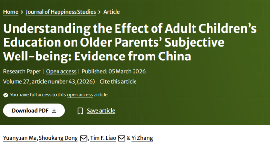 Good News! Research Findings of Researcher Ma Yuanyuan Officially Published in the Prestigious Journal of Happiness Studies