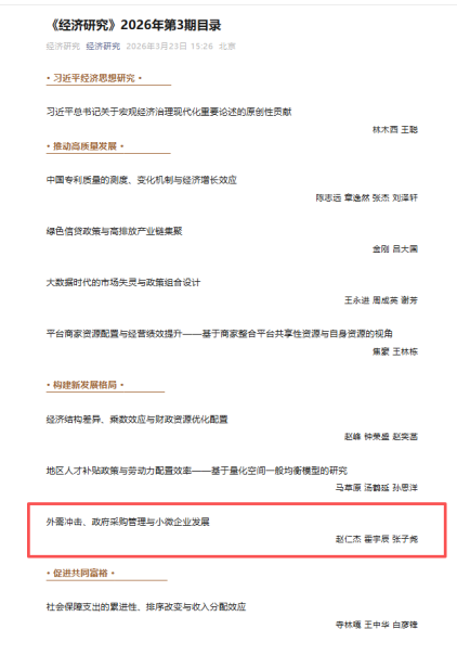 Good News! Research Findings of Researcher Wang Zhonghua Published in the Top-Tier Economic Research Journal