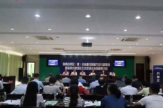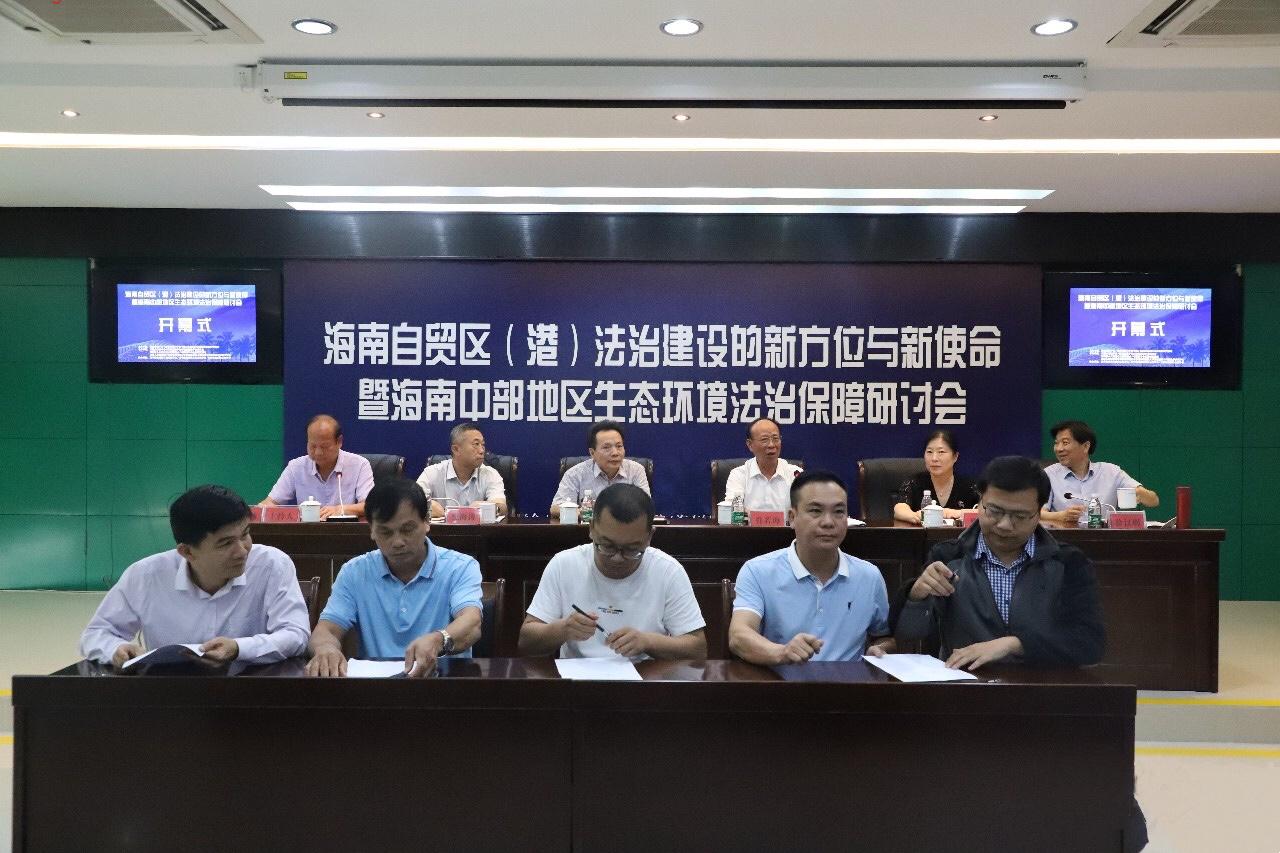 (通讯员 张倩)10月26日,海南自贸区(港)法治建设新方位与新使命论坛暨海南中部地区生态环境法治保障研讨会在五指山市举行。本次活动由海南省法学会、海南师范大学法学院、海南经济特区法治战略研究基地主办,五指山市法学会、海南省法学会环境资源法学会研究会、海南省人大常委会立法联系点、中国法学会法治研究基地、最高人民检察院中南检察研究院、中南财经政法大学法治发展与司法改革研究中心承办。海南省法学会党组书记、会长肖若海,五指山市人民法院院长薛蕃超,五指山市委副书记、政法委书记、法学会长刘辉,海南师范大学副校长、教授、博士生导师史海涛等出席下午的开幕式并向大会致辞。开幕式由海南省法学会秘书长、省委政法委副巡视员吴家杨主持。中南财经政法大学副校长、教授、博士生导师、中国法学会常务理事、刑事诉讼法学研究会副会长、最高人民检察院中南检察研究院院长姚莉,中南财经政法大学教授、博士生导师、中南财经政法大学法治发展与司法改革研究中心暨湖北法治发展战略研究院(以下简称-中心-研究院-)主任(院长),中国法学会常务理事、网络与信息法学研究会副会长徐汉明,中南财经政法大学法学院陈实副教授,中心-研究院副院长杜建国、院长助理叶强、研究员徐凯、博士研究生孙逸啸一行出席了本次会议。