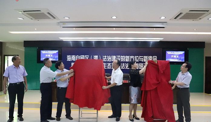 在此期间,备受关注的中国法学会法治研究基地、最高人民检察院中南检察研究院协同创新基地和中英法律与司法研究所海南基地揭牌仪式正式启动,肖若海会长、姚莉副校长、史海涛副校长,徐汉明主任共同为基地揭牌。
