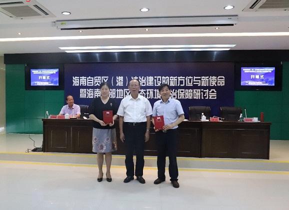 随后,肖若海会长为姚莉教授、徐汉明教授颁发海南省法学会环境资源法学研究会首席学术顾问聘书,冯春萍主任代表海南经济特区法治战略研究基地为陈实、杜建国、叶强、徐凯、孙逸啸等颁发兼职研究员聘书。