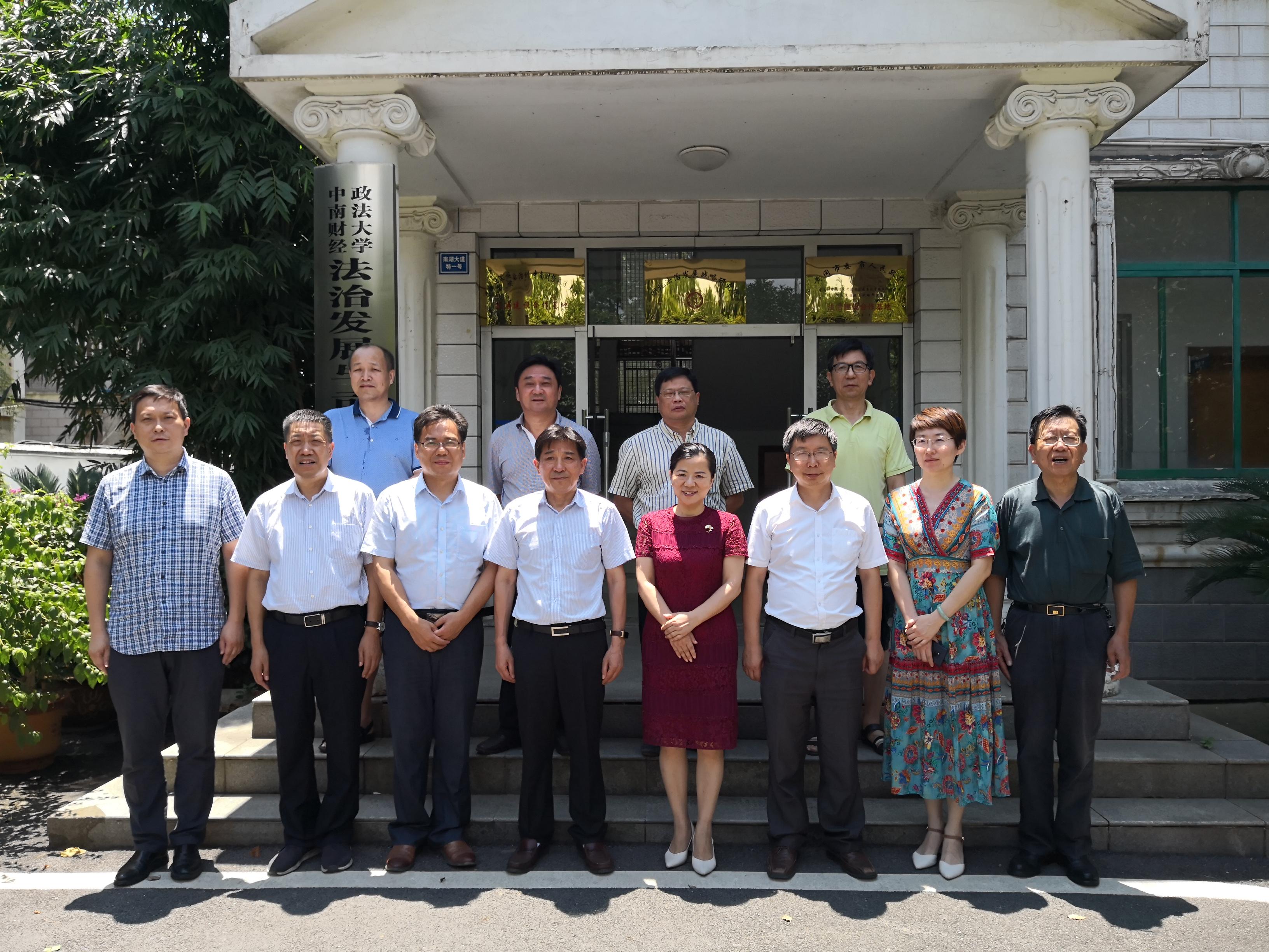 2019年7月31日,武汉市政法委副书记罗平率领武汉市政法委基层社会治理处工作人员一行莅临中南财经政法大学法治发展与司法改革研究中心暨湖北法治发展战略研究院调研,商讨合作事宜。中南财经政法大学副校长邹进文、中心主任徐汉明教授以及研究院副院长徐柏才、党支部书记姜公映、中南财经政法大学教授张德淼、袁铖、副教授武乾、中心研究员叶强等参加座谈会。