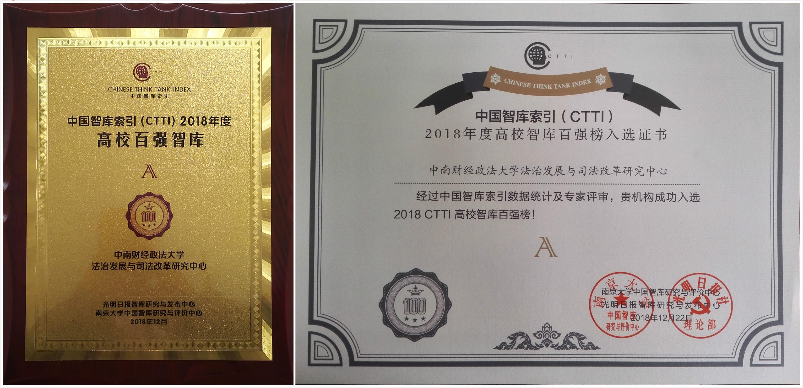 论坛上发布了《2018 CTTI智库报告》,并公布了CTTI高校智库百强榜。中南财经政法大学法治发展与司法改革研究中心成功入选CTTI高校智库A级榜单。