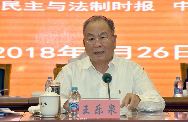王乐泉指出,法学研究要强化实践意识和问题导向,积极主动为党和国家工作大局服务。要敏锐捕捉全面建成小康社会对法学理论研究的需求,认真思考、谋划、梳理本学科本领域的法治建设任务,从我国改革发展的实践中挖掘新材料、发现新问题、提出新观点、总结新经验,推动中国特色社会主义法治理论研究不断深化,为完善中国特色社会主义法治体系、建设社会主义法治国家提供强有力的智力支持和理论支撑。要高度重视人才培养,服务好法治人才队伍建设,在法学教育、法学研究和法治实践中发现人才、培养人才、举荐人才、造就人才,培养更多熟悉和坚守中国特色社会主义法治体系、德法兼修的社会主义法治人才。