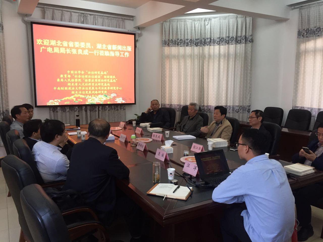 4月22日下午,湖北新闻出版广播电视局局长张良成同志一行莅临中南财经政法大学法治发展与司法改革研究中心暨湖北法治发展战略研究院调研。