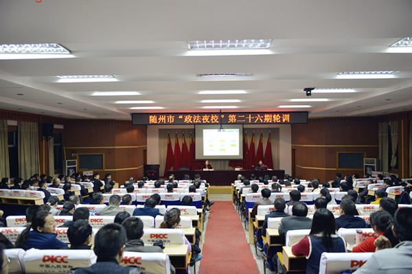 据悉,“政法夜校”是随州市为认真贯彻落实十八届三中全会和中央政法工作会议精神及省委政法委有关要求,在全市政法机关深入开展党的群众路线教育实践活动而创办。旨在通过政法讲堂、专家释惑、风采展示等形式,扎实开展信仰教育、忠诚教育、良知教育、敬畏教育,进一步提升干警素质、提高执法水平,促进严格执法、公正司法,打造一支信念坚定、执法为民、敢于担当、清正廉洁的政法队伍。此次,徐汉明教授受邀为参加夜校轮训的第二十六期干警授课,随州市政法委、公安、检察院、法院政法系统副科级以上干警参加学习。