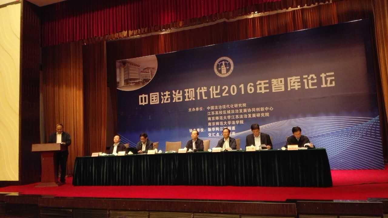 (通讯员 张新平) 10月22日,由中国法治现代化研究院、江苏高校区域法治发展协同创新中心、南京师范大学江苏法治发展研究院和南京师范大学法学院共同主办的“中国法治现代化2016年智库论坛”在南京举行。中南财经政法大学法治发展与司法改革研究中心主任暨湖北法治发展战略研究院院长徐汉明教授应邀参加,并作了题为《发展语境下的社会治理法治指标体系构建及其评估》的主题发言。