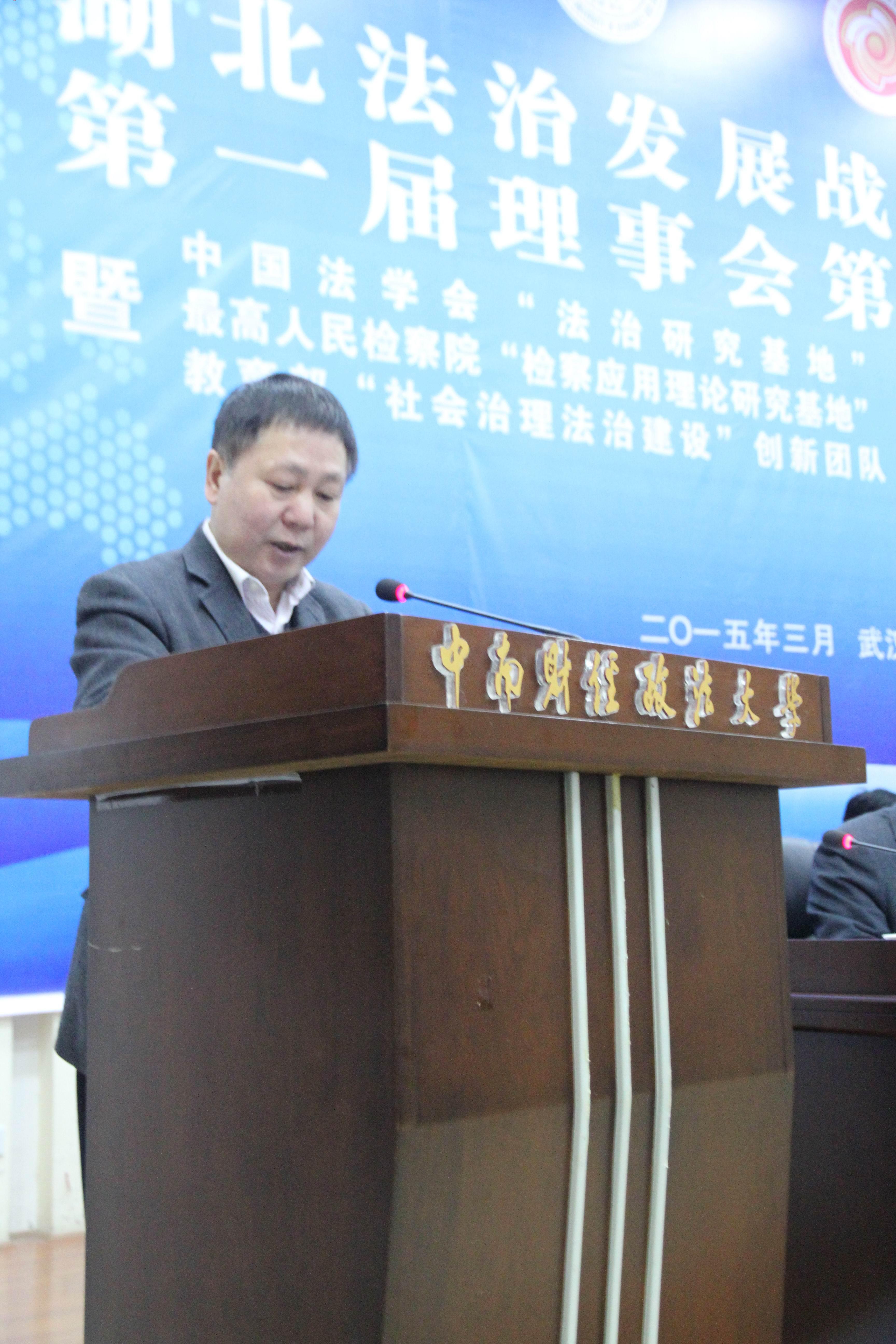 (本网讯 通讯员 曾海涛 项盼 李杨)2015年3月8日,湖北法治发展战略研究院第一届理事会第四次会议在中南财经政法大学文泓楼一楼学术报告厅隆重举行。湖北省人大常委会副主任赵斌,中南财经政法大学校长杨灿明,湖北法治发展战略研究院学术委员会主席吴汉东,湖北法治发展战略研究院理事长徐汉明等领导和业界专家出席了会议。