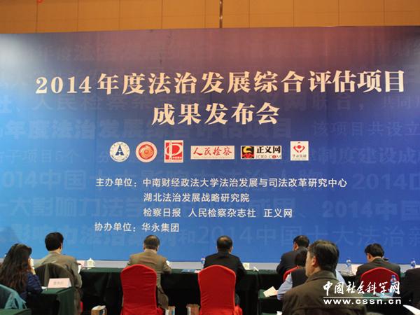 中国社会科学网讯(记者任国凤)2月12日下午,由中南财经政法大学法治发展与司法改革研究中心、检察日报、人民检察杂志社、正义网和华永集团共同举办的“2014年法治发展综合评估项目成果发布会”在京召开。检察日报社副总编辑赵信系统介绍了成果项目评估情况。中国社会科学院法学研究所诉讼法研究室主任熊秋红研究员、中国社会科学院法学所刑法室主任刘仁文研究员、武汉大学法学院副院长汪习根教授、中南财经政法大学副校长姚莉教授、中国政法大学光明新闻传播学院副院长姚广宜教授等,对项目成果进行了精彩点评。全国政协委员、华永集团董事长李勇作了发言。来自中央政法机关、高校等科研院所和新闻媒体的80余位嘉宾也参加了会议。